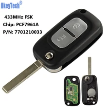 OkeyTech Remote Flip Key 2 Buttons 433MHz PCF7961A Chip For Renault Clio III Kangoo Master Modus Twingo Part Number 7701210033