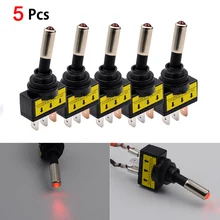 5PCS New Rocker Switch Toggle 12V Led Light Car Auto Boat Round ON/OFF SPST 2 Pole Design 20 AMP Built In LED Light