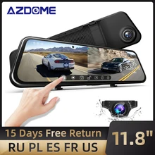 Дзеркальна відеореєстратор AZDOME Передня і задня подвійна відеореєстратор для автомобілів 11,8-дюймовий сенсорний екран з повним сенсорним екраном 1296P Резервна камера нічного бачення