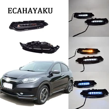 1 пара стайлинга автомобилей светодиодные дневные ходовые огни DRL с желтым сигналом поворота ночник для Honda Vezel 2014 2015
