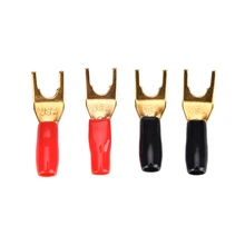Hot 4PCS Copper Gold Plated Tuning Fork Banana Y Spade Plug Adapter AV Audio Terminals Connectors For Speaker Cable Power