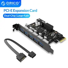 ORICO USB 3.0 5 Ports Hub Adapter External Controller Express Card PCI-E Expansion Card with 4-pin Power Connector Cord