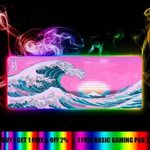 Great Wave Landscape RGB Gaming Computer Mousepad Large Big Gamer Desk Mouse Pad Led Mause Pad Backlit Keyboard Mice Mat