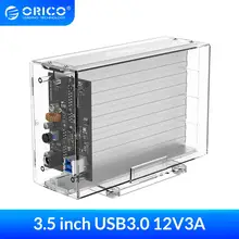 ORICO Transparent Dual 3.5'' USB3.0 HDD Case 6Gbps SATA to USB 3.0 HDD Dock Station UASP 24TB Tool Free Add 12V3A Power Adapter