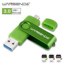 WANSENDA OTG USB Flash Drive USB 3.0 High SPeed Pen Drive 16GB 32GB 64GB 128GB 256GB Pendrive Micro USB Stick Flash Memory Disk