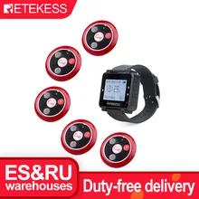 Retekess Restaurant Pager Hookah Call Waiter Wireless Calling System T128 Watch Receiver+5pcs T117 Call Buttons for Bar Cafe