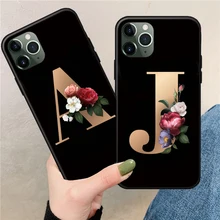 М'який чохол для телефону з ТПУ з буквою і монограмою, золота квітка, чохол для iPhone 12 Pro Max 11 Pro Max 12 Mini X XR XS, задня кришка Fundas Shell