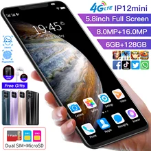 Global IP12MINI Andriod 9.1 Smart Phone 5.8 Inch 4G Network 8+16MP 4500mAh 8 Core Dual SIM+Micro SD Mobile Cellphones MT6598