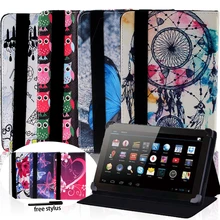 New Printed Leather Cover Case for Amazon Fire 7/HD 8/HD 10 with Alexa - 360 Degree Protective Soft Shell Flip Stand Tablet Case